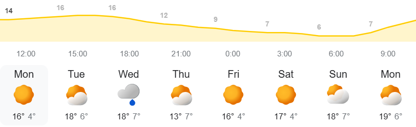 אם אתם מגיעים למילאנו השבוע, בין ה-23 למרץ ועד ה-31 למרץ, הכנו עבורכם סקירה של מזג האוויר במילאנו לשבוע הקרוב. מילאנו נמצאת בסופו של החורף (נובמבר עד מרץ, שנקרא באיטלקית inverno) מזג אוויר קר, יכול לרדת גשם, הטמפרטורות נעות בין 5 מעלות עד 18 מעלות.